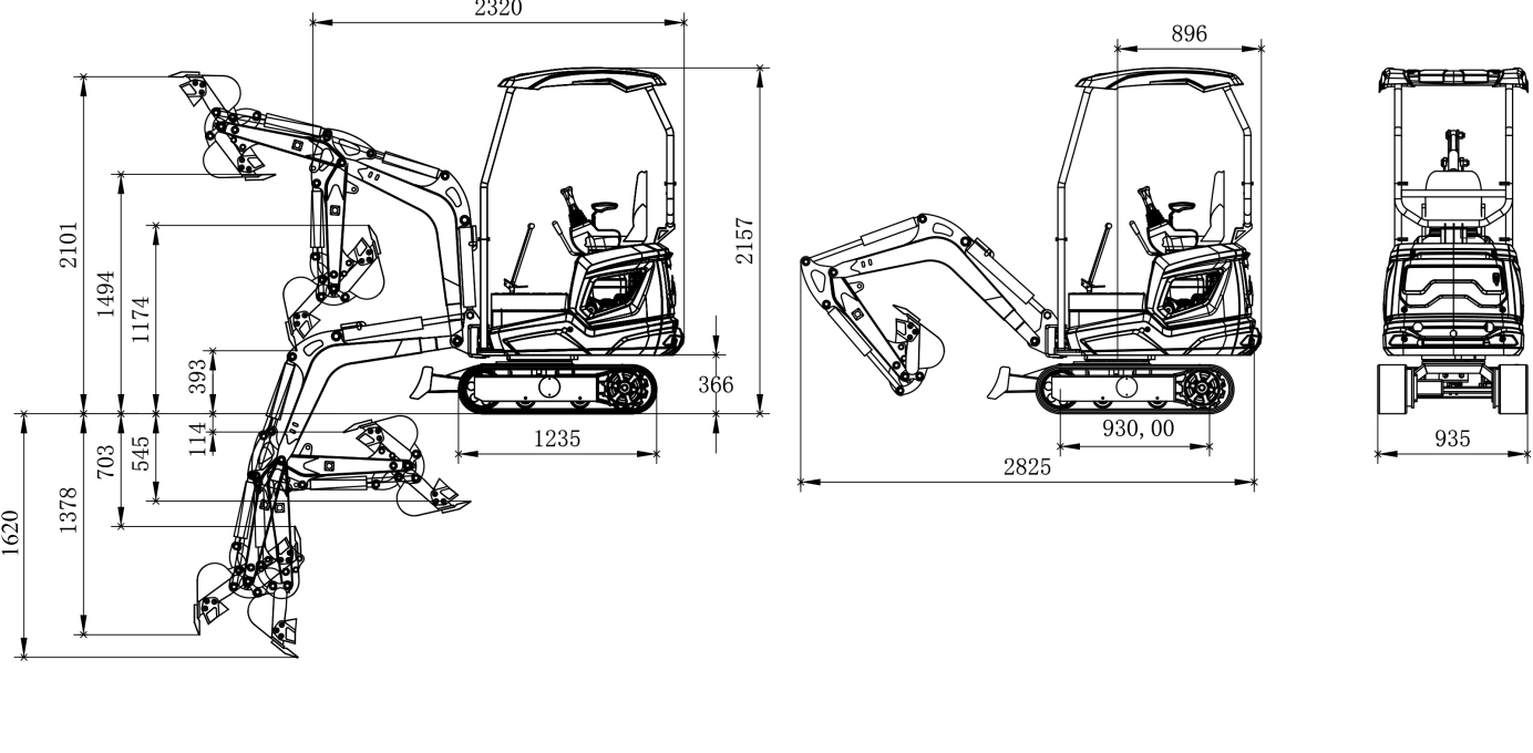 Mimoosé kopání, 360 nekonečná otoč, roztahovací pásy, skryté hadice v rameni, profi ovládaní joysticky na boku, 2x hydraulická pumpa, chladič hydr. oleje, hydraulický multicestný ventil značky NORTH MACHINE, litinové pojezdové motory
